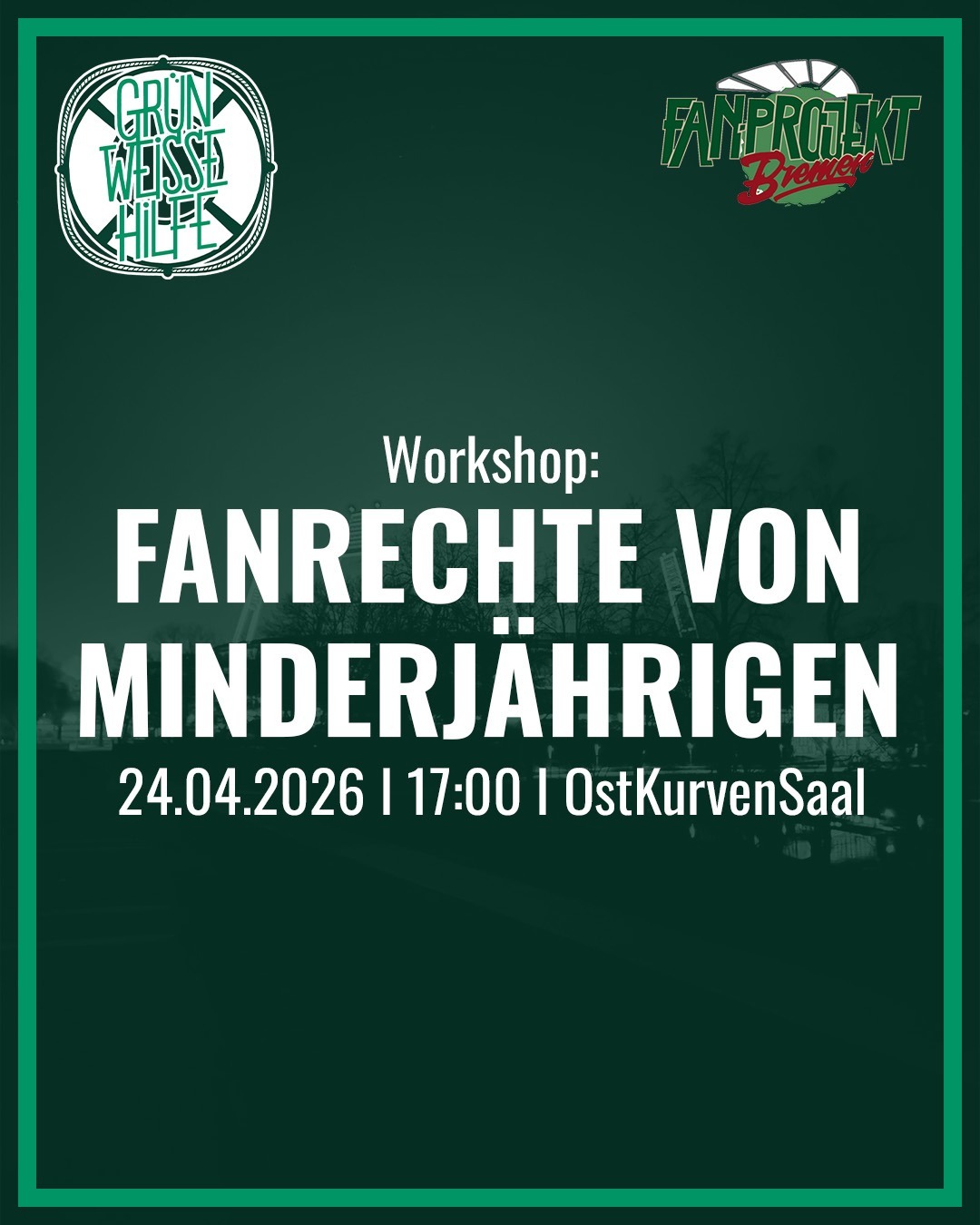 am kommenden Freitag veranstaltet das Fan-Projekt Bremen in Kooperation mit der Grün-Weißen Hilfe eine besondere Veranstaltung, in der es um Fanrechte von Minderjährigen geht.